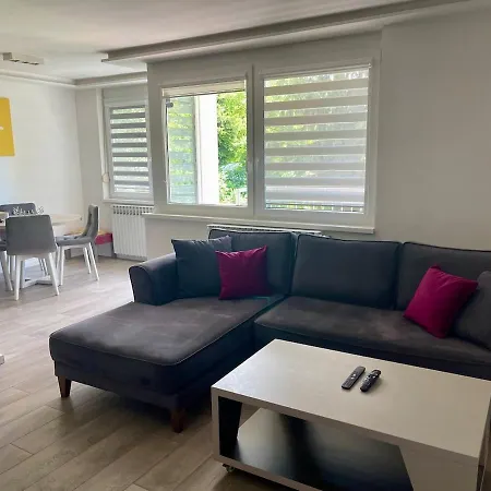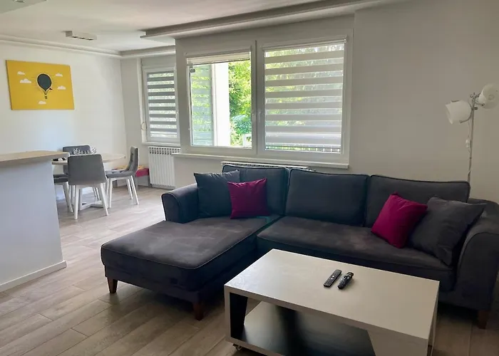 The 56 m² Apartment Kan Sarajevo provides swift access to various city landmarks, such as Mercator Dobrinja, located just a 6-minute walk away. Wi-Fi and free private parking are also available at the apartment.